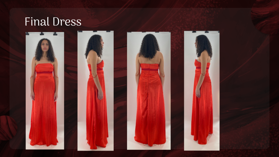 For this design, there was the restriction of creating a formal red dress. This design is based on connection and lack there is and the development of depression.